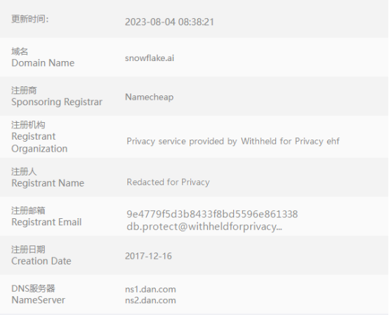 4、单词域名 Snowflake.ai 以4万美元完成交易