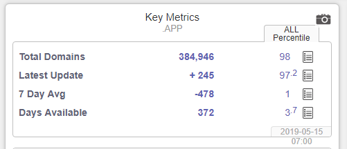 时间过去一年整,现如今.app后缀的域名注册总量仍旧在不断上升,现已突破38万个,接近38.5万个。