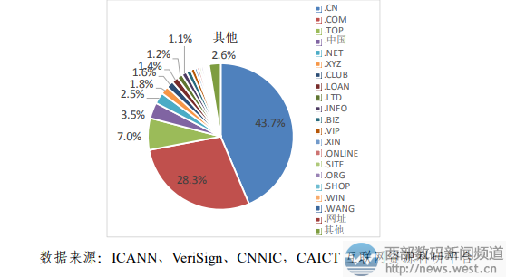 图5:我国域名注册量TOP20顶级域市场份额